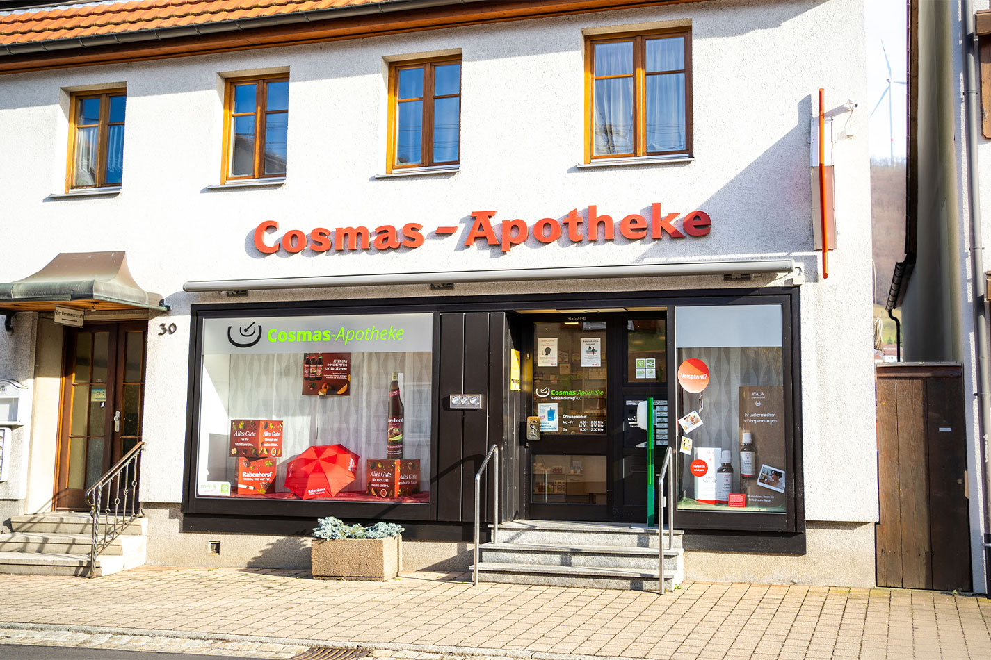 Im Januar 2019 habe ich die Cosmas-Apotheke übernommen. Wir sind eine lebhafte Landapotheke mit Schwerpunkt naturheilkundlicher Beratung. Uns liegt es am Herzen alle Generationen von Säugling bis ins hohe Alter ganzheitlich zu beraten. Wir haben sowohl mealieber-natürlich Berater als auch zwei Apothekerinnen mit geriatrischer Weiterbildung. Ihre Gesundheit liegt uns sehr am Herzen. Kommen sie vorbei, wir freuen uns auf ihren Besuch. Gerne nehmen wir auch Vorbestellungen per e-mail, Telefon oder App entgegen. Ihr Team der Cosmas-Apotheke