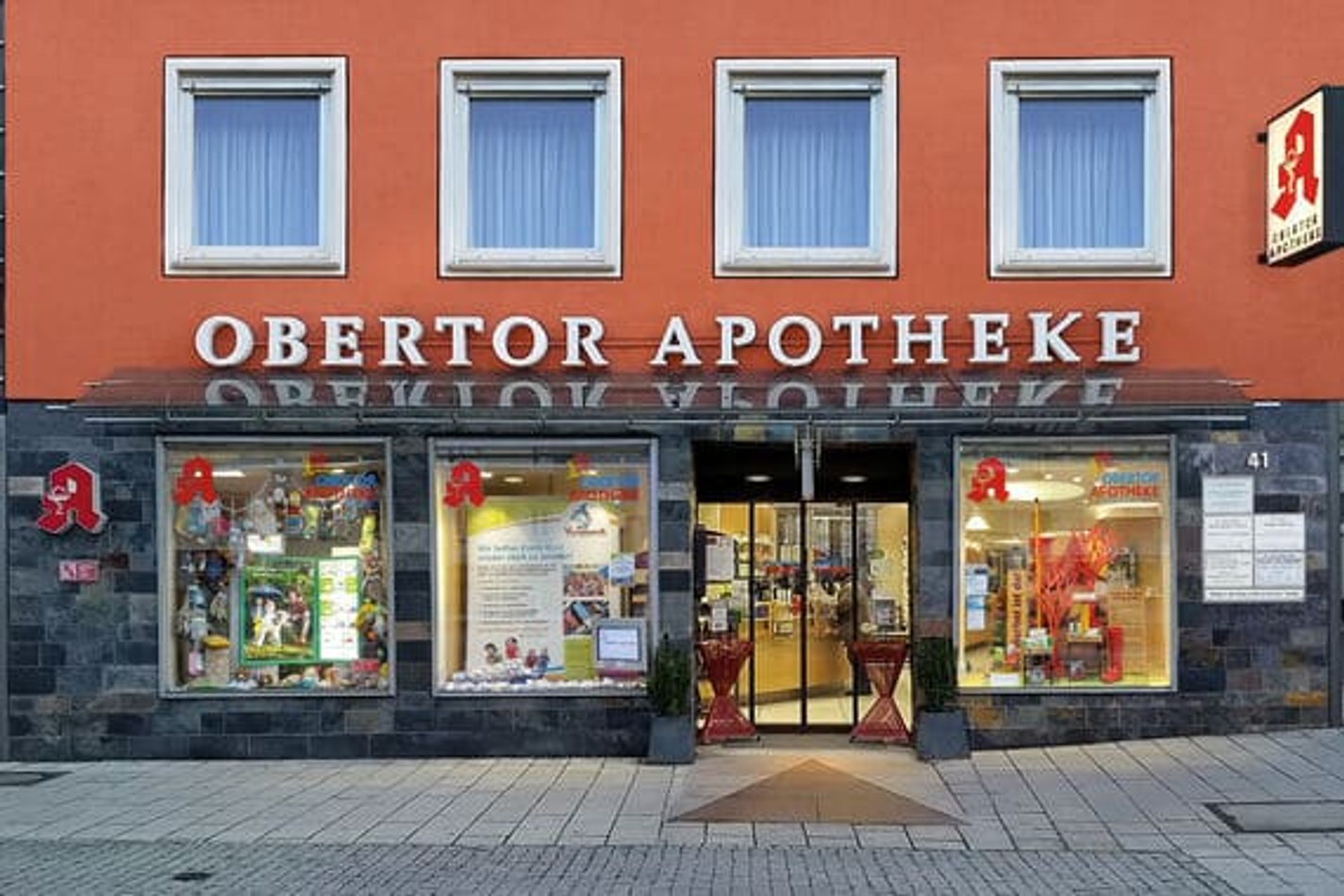 Die Obertor-Apotheke, nahe der Esslinger Innenstadt gelegen, blickt auf eine lange Tradition zurück. Seit 1950 steht bei uns die individuelle und kompetente Beratung unserer Kunden im Vordergrund. Neben dem klassischen Apothekensortiment bieten wir weitere Dienstleistungen wie z.B. Heimbelieferung und die Herstellung von Sonderrezepturen, Schmerztherapeutika, parenteraler Ernährung und onkologischer Zubereitungen an. Wie auch unsere Partnerapotheke, die Apotheke am Diakonie-Klinikum in Stuttgart, gehören wir zum Verbund der Scheuerle Pharmazie. Dieser Verbund steht für vielseitige innovative Leistungen und Lösungen im Gesundheitswesen. Wir freuen uns auf Ihren Besuch!