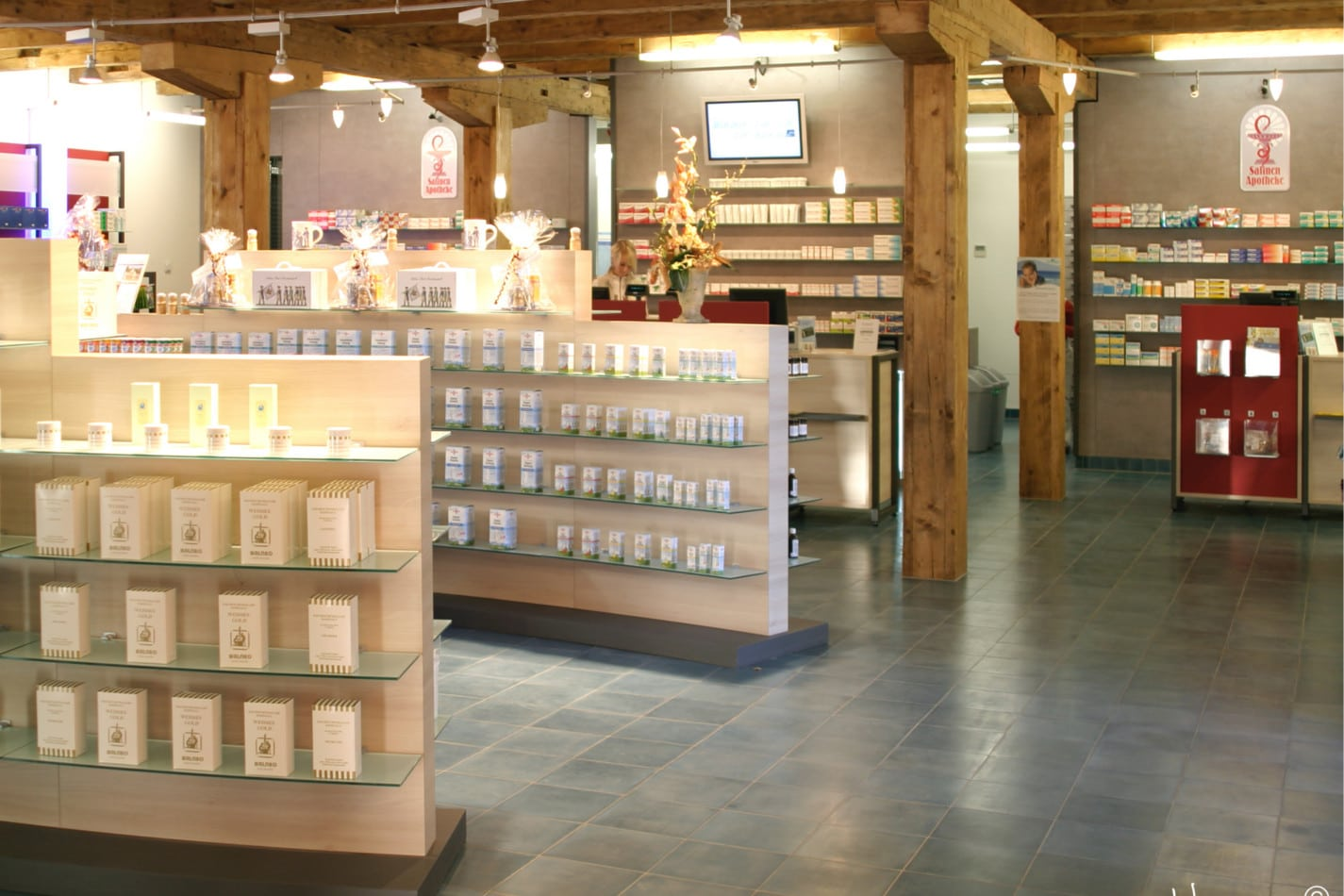 Im Jahre 2007 bekam die Kur-Apotheke mit der Gründung der Salinen-Apotheke im historischen Kern der Stadt einen Partner, der sich sehen lassen kann. In der Alten Saline, einem der ältesten Industriedenkmälern Europas, bietet sie mit ihrem großzügigen Innenraum und dem einzigartigen Alpensolebrunnen einen erstaunlich modernen Anblick.