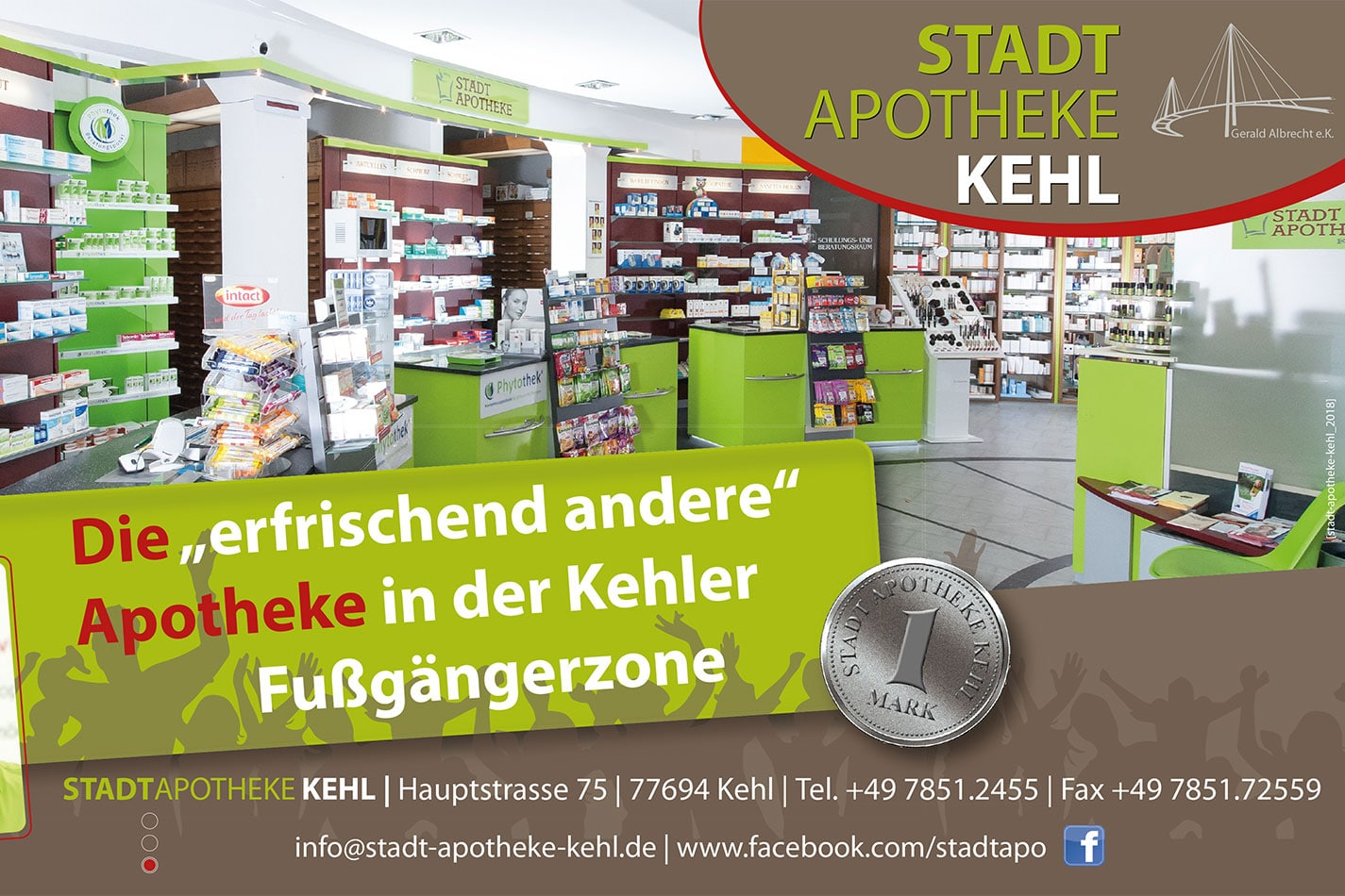 Stadt-Apotheke Kehl - Ihre erfrischend andere Apotheke in der Kehler Fußgängerzone in unmittelbarer Nähe zur Straßburger Tram-Endhaltestelle D und zum Busbahnhof direkt am Kehler Rathaus.