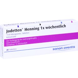 - Bei Iodüberempfindlichkeit kann die Einnahme des Arzneimittelszu Fieber, Hautausschlag, Jucken und Brennen der Augen, Reizhusten, Durchfall oder Kopfschmerzen führen. In diesem Fall ist, nach Rücksprache mit dem Arzt, die Tabletteneinnahme zu beenden.